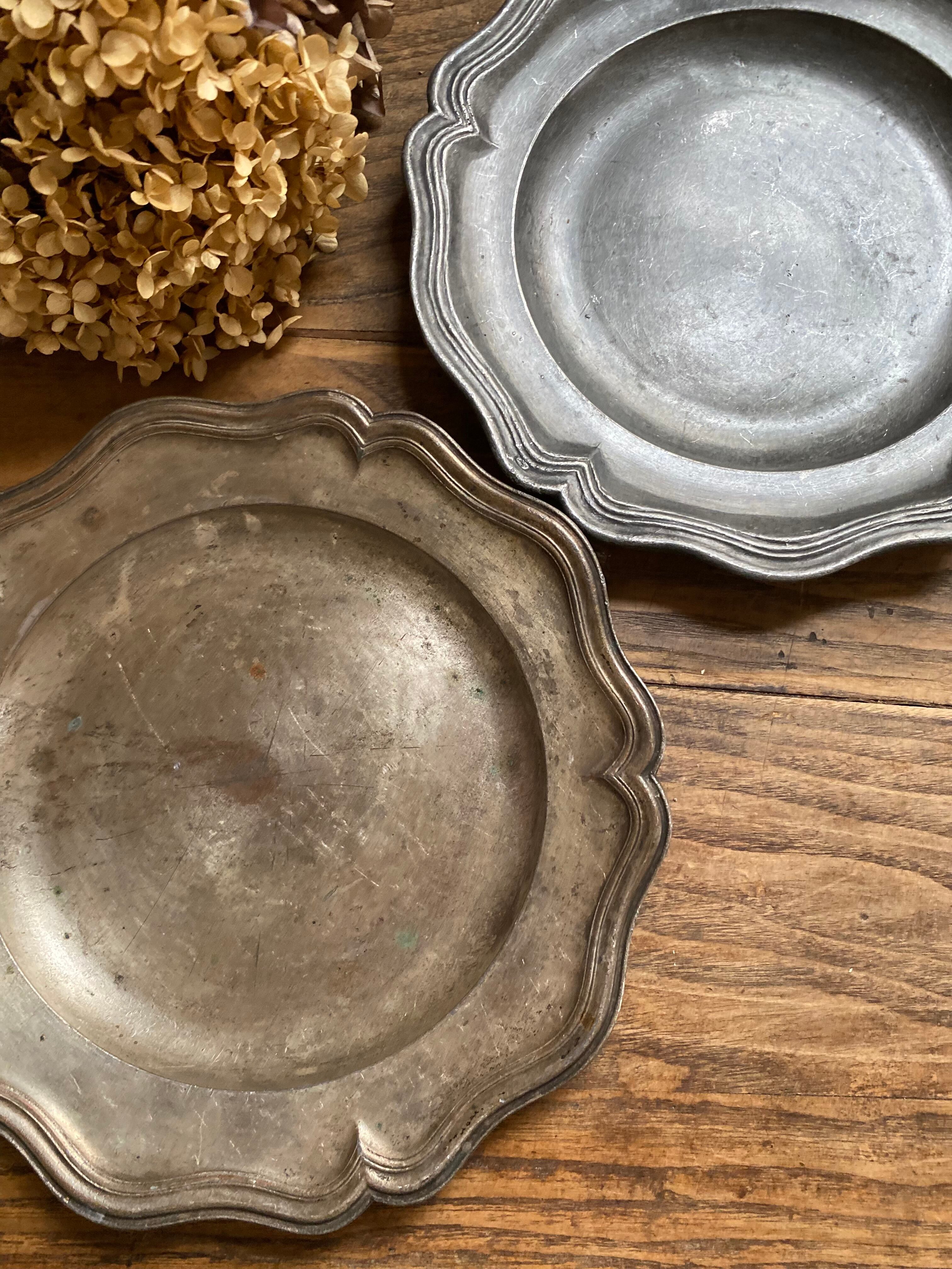 花リムのエタン(錫=すず)プレートは味わい深く、ずっしりと重みも感じます。