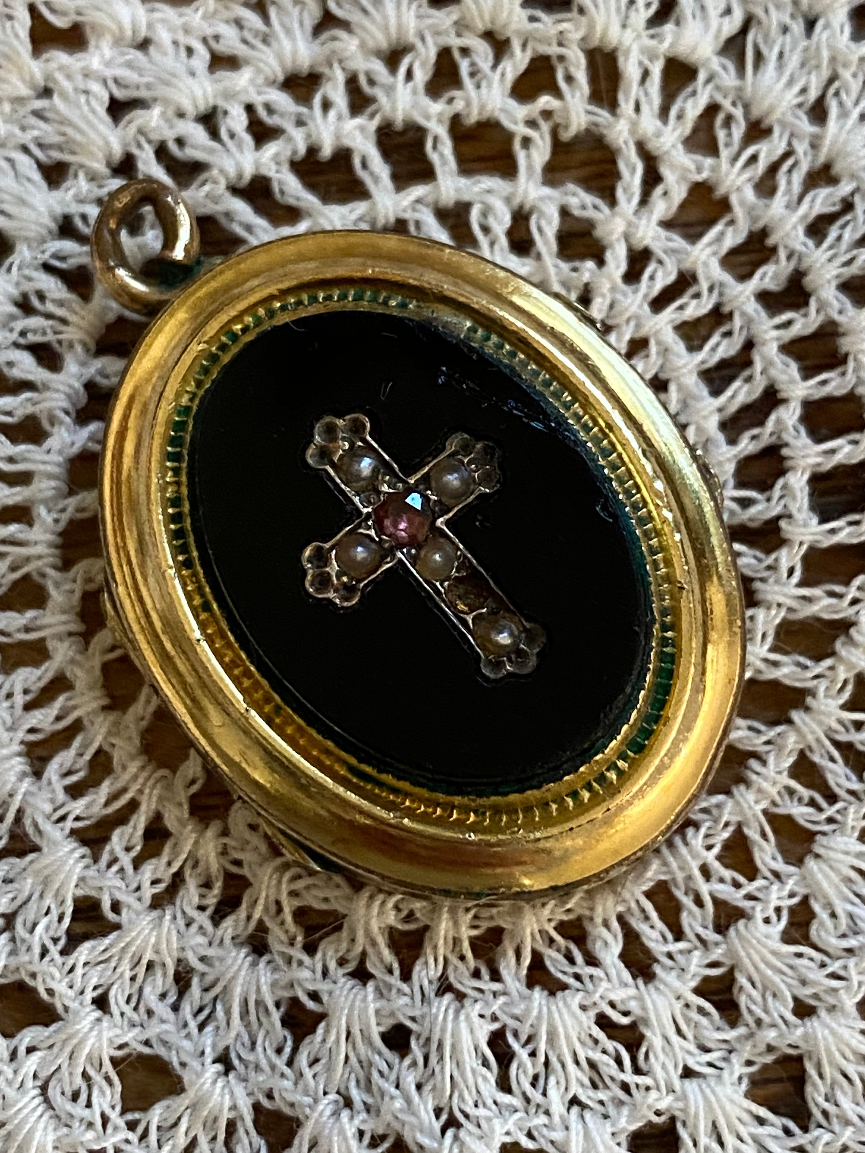 クロス十字のペンダントトップ ロケットペンダント フランスアンティーク フランスヴィンテージ クロス十字 ペンダントトップ