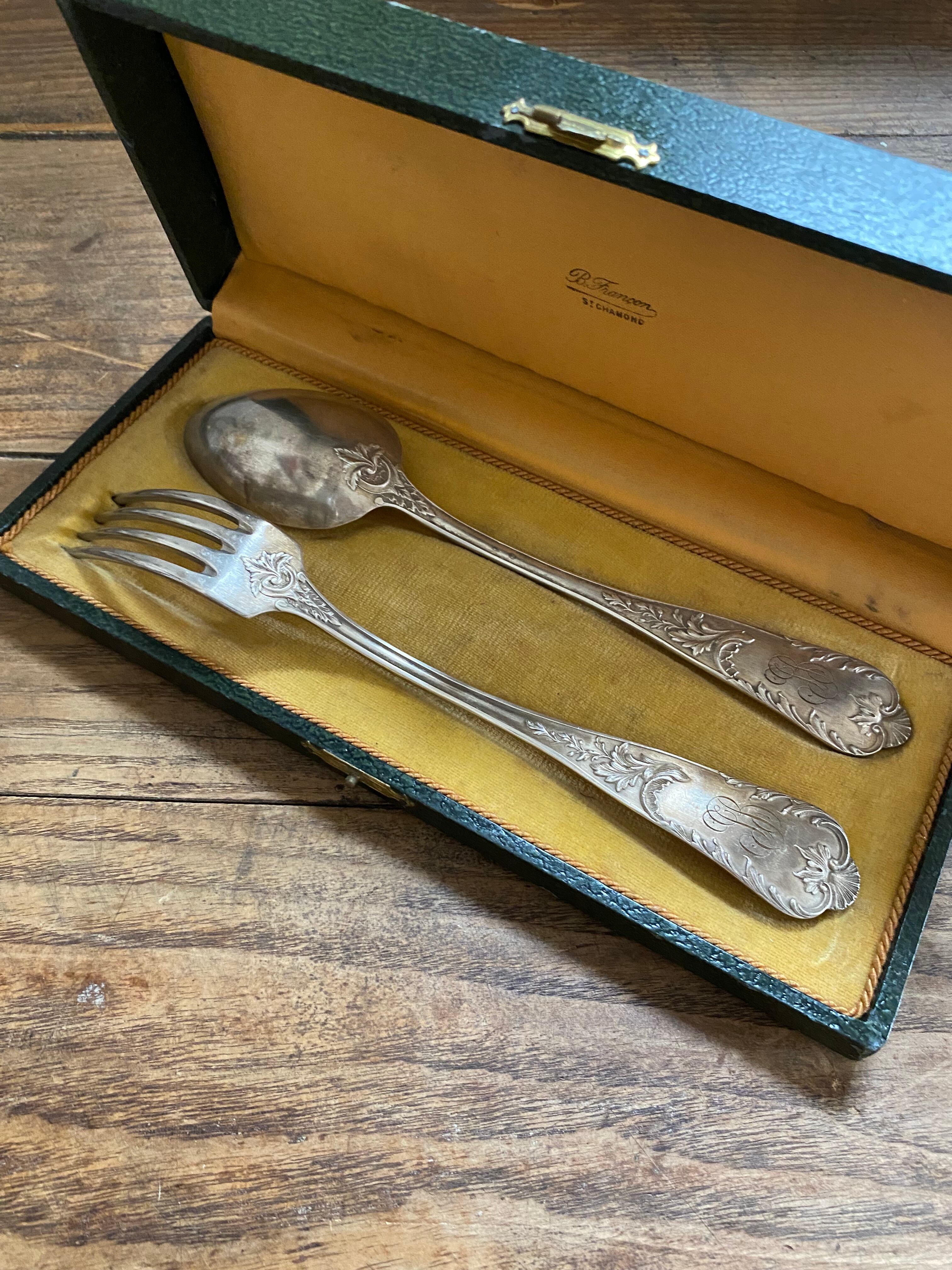 モノグラムの入ったカトラリー スプーンフォークセット フランスアンティークカトラリー アンティーク食器