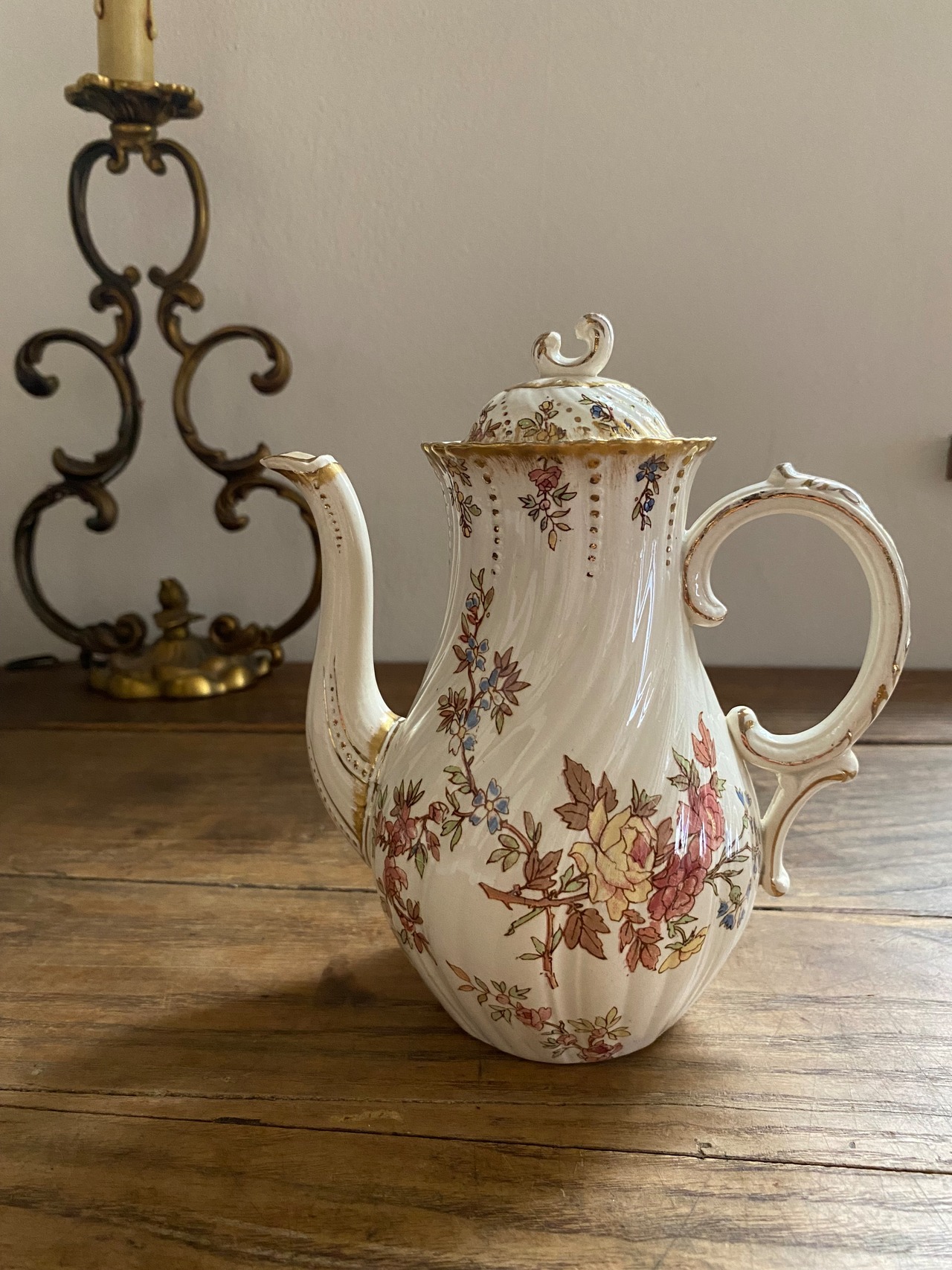 シリーズのポットには注ぎ口の裏側までハートがモチーフのものが描かれています。金彩もとても綺麗に残ったコンディションとなっております。