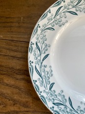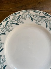 白をベースに深みのあるグリーンでリムを1周ミモザが並んでる姿が可愛らしいプレートとなっております。