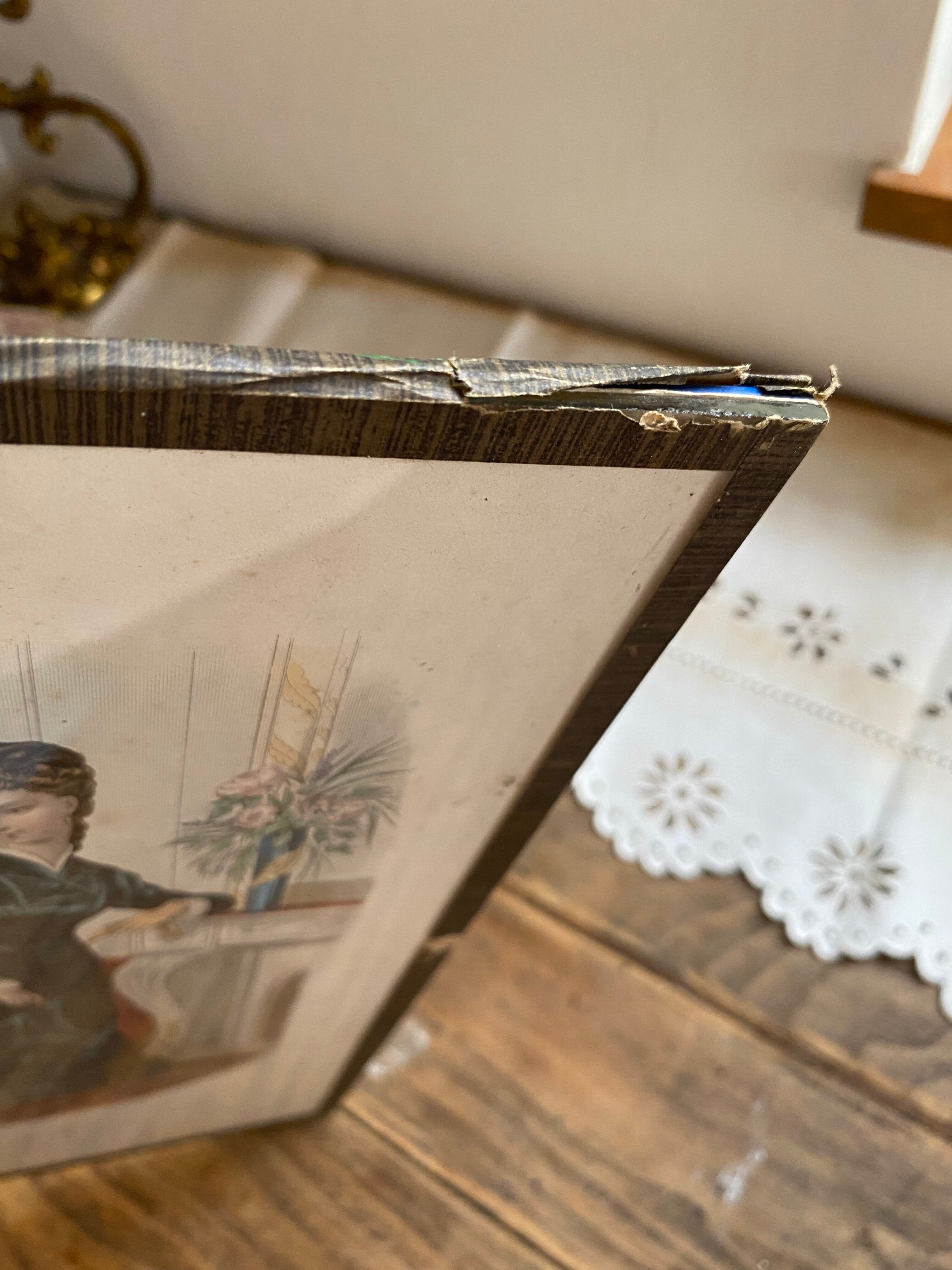 残念ながら経年でガラスと裏側の台紙とは剥がれた箇所がみられますので、飾られる際にはしっかりと固定されてからとなります。